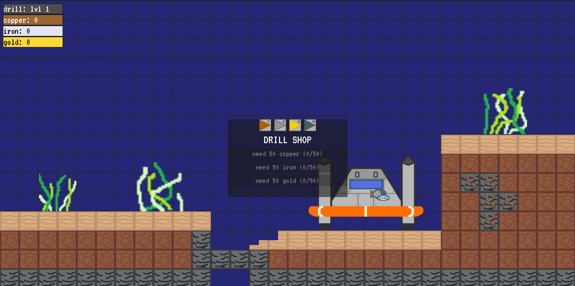 Down Under is a simple game about a mining submarine trying to get back home by mining the ores beneath the surface. Inspired by the likes of Motherload.